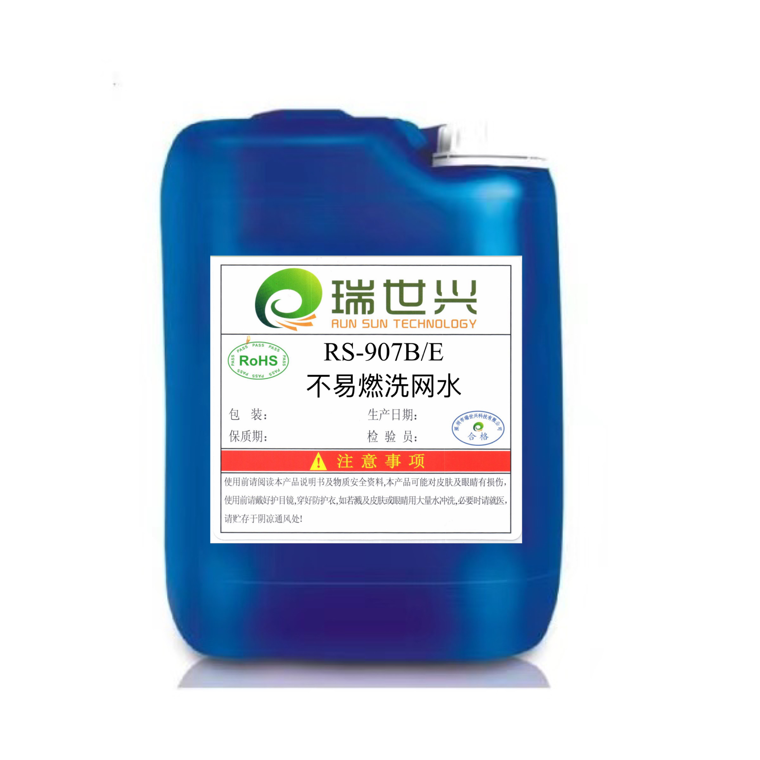 RS-907不易燃洗網(wǎng)水為我司最新研發(fā)之不易揮發(fā)且異味輕微之特殊溶劑,可適用于網(wǎng)板印刷之所有油墨綠漆及文字之清潔,搭配自動機械式噴灑均有非常好之效果,且不傷網(wǎng)板,清洗效果良好,水洗性佳、易溶于水。